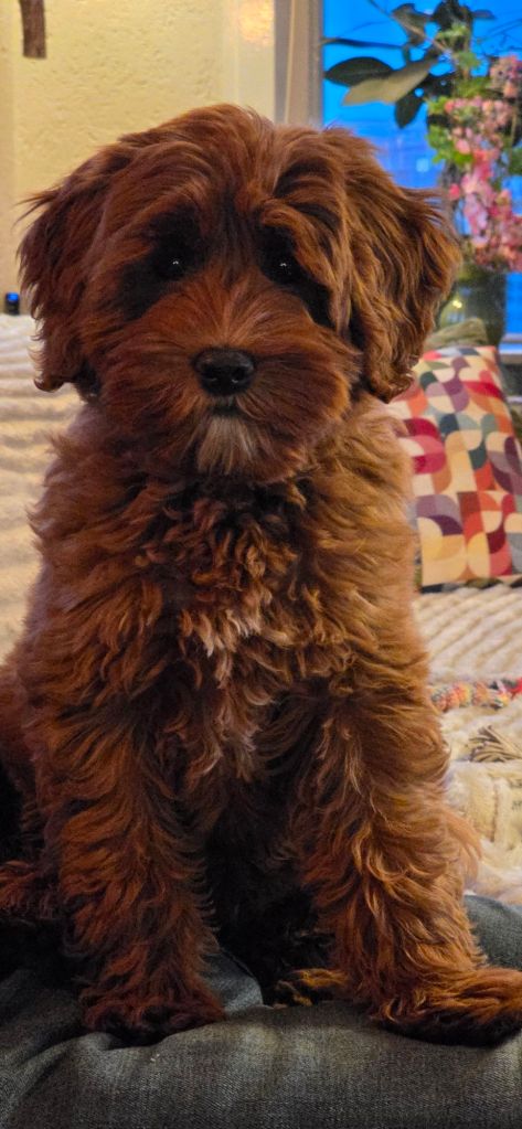 Babs is een prachtige medium bruine Australian Cobberdog. Ze is een heerlijke, vrolijke ondernemende dame. Ze woont in een lief gastgezin en zal im het najaar van 2026 haar 1e nestje mogen krijgen. Dat zullen dan pups worden in de kleuren creme, abricot en zwart.